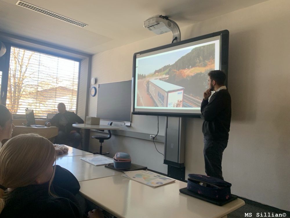 Welche Aufgaben hat ein Transportunternehmen? Wie viele Mitarbeiter sind beschäftigt? Welche Dienstleistungen bietet die Firma, welche Arbeitsbedingungen herrschen in dieser Branche und wie sieht die Ausbildung aus? All das und noch viele andere Fragen beantworteten Juniorchef der Fa Mair, Michael Mair, sowie Disponent Michael Lienharter den SchülerInnen der 4. Klassen unserer Schule.