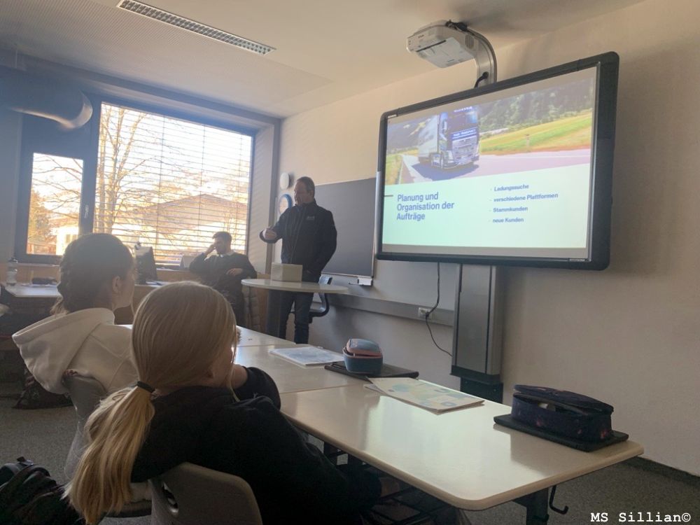 Anhand einer Powerpointpräsentation erhielten die SchülerInnen einen Einblick in die Arbeit der Firma und konnten sich speziell ein Bild über die Arbeit eines Disponenten machen. In einer kleinen Fragerunde wurden knifflige Angelegenheiten und Besonderheiten beanwortet. Die Firma bietet auch Schnupperkurse für Interessierte an und ist bemüht, junge Leute aufzunehmen und weiterzubilden.