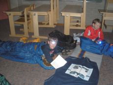Ausgerüstet mit Schlafsäcken und Taschenlampen kamen die Schüler am Freitag, den 17. Oktober, um 20.00 Uhr erwartungsvoll in die Hauptschule. Und ihre Erwartungen wurden erfüllt. Lesepuzzle, Klangspiele zu Gruselgeschichten, Basteln von Lesezeichen und Buchvorstellungen standen auf dem Programm. Als nach einer gruseligen Mitternachtsgeschichte bei Kerzenschein auch noch das Schulgespenst in Erscheinung trat, war der Höhepunkt erreicht. Bis weit in die Nacht hinein durften die Kinder noch beim Schein ihrer Taschenlampen in Büchern schmökern. Mit einem gemeinsamen Frühstück schloss die gelungene Nacht.