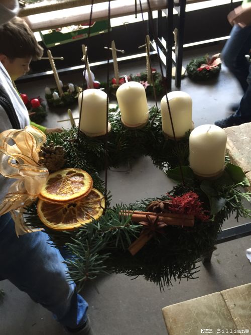 Adventkränze selber winden und Halterung aus Holz anfertigen.