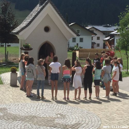 Zum Abschluss des Marienzyklus hat die Klasse 2m selbst Fingerrosenkränze gebastelt. Diese wurden bei der Feier einer kleinen Marienandacht bei der Kapelle der Fam. Baldauf gesegnet.