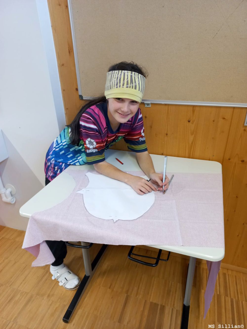 Eifrig wurde an individuellen Modellen/Schnittmustern gearbeitet. Jedes Kind übertrug seine entwickelte Schnittvorlage auf den Stoff. Dabei wurden auch einige Begriffe, die es beim Nähen braucht, erklärt und angewendet (Nahtzugabe, Heftfaden, usw.) An der Nähmaschine waren verschiedene Sticharten notwendig, um einer „industriellen Anfertigung“ näher zu kommen. Das Kissen wurde mit dem Naturprodukt „Dinkelpilz“ gefüllt. Somit erfüllt dieses Produkt auch den gesundheitlichen Aspekt.