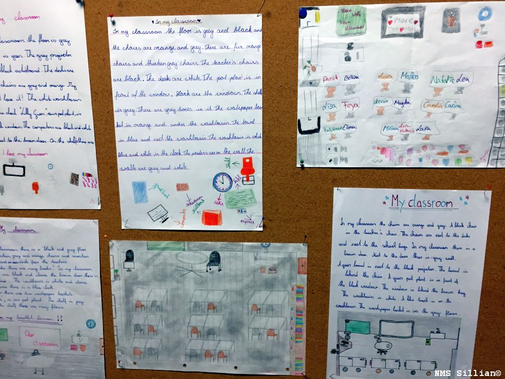 Die Schülerinnen und Schüler der 1. Klassen beschrieben im Englischunterricht ihr Klassenzimmer.