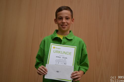 Mathias Walder, Schüler der 2b, erreichte von 1 500 Finalisten seiner Schulstufe, den ausgezeichneten zweiten Platz.